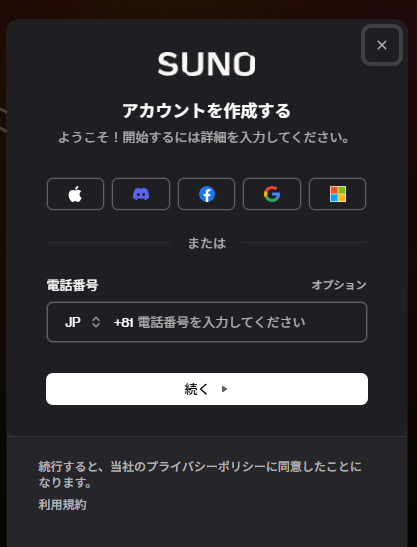アカウントを作ったので、機会があったらまたSUNOに