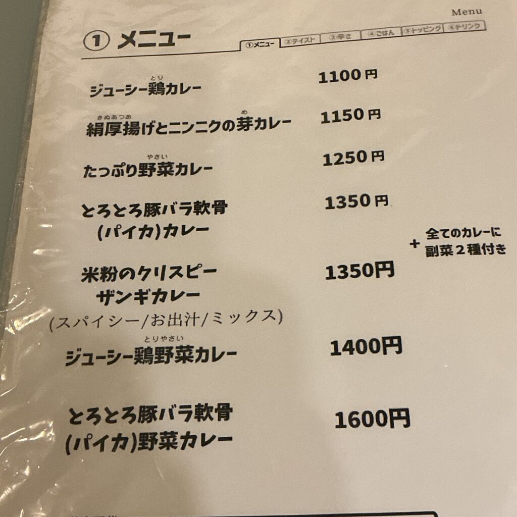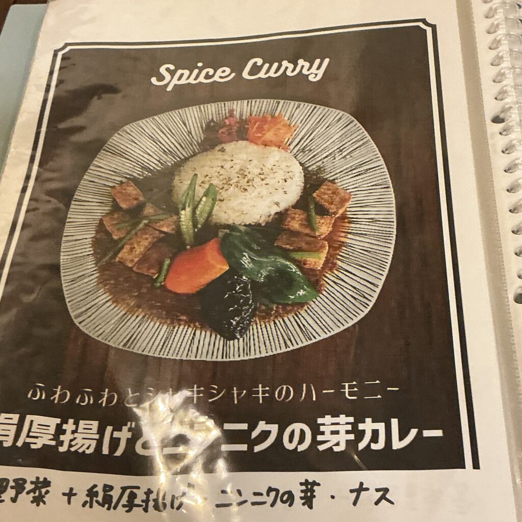 わたしはこちらの、絹厚揚げとニンニクの芽のカレーをお願いしました