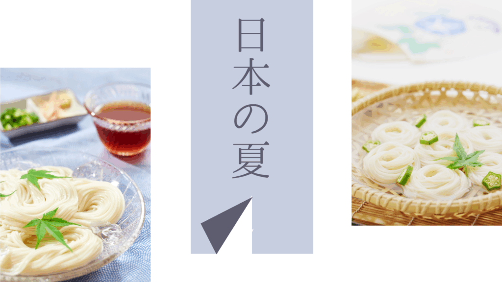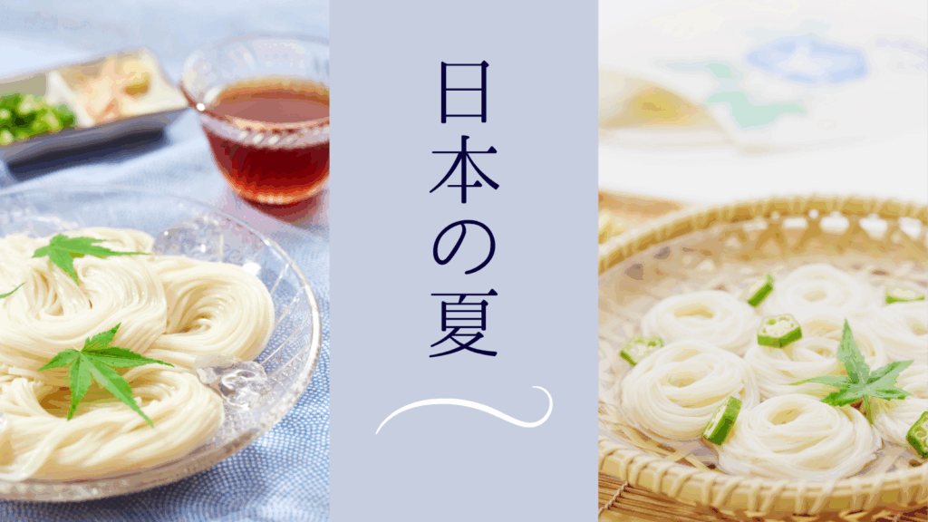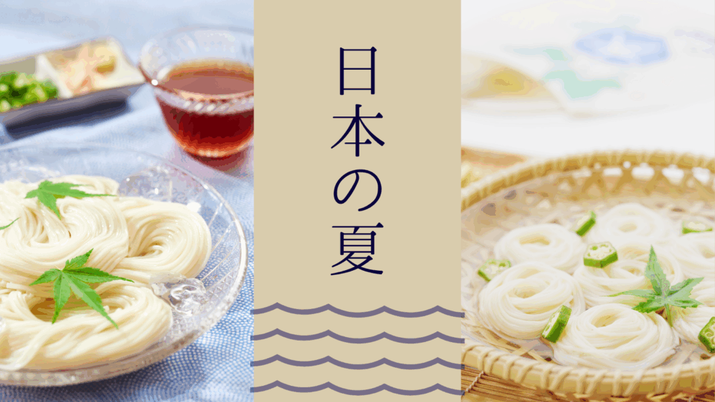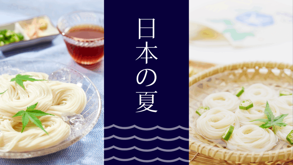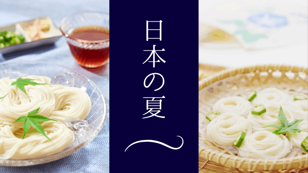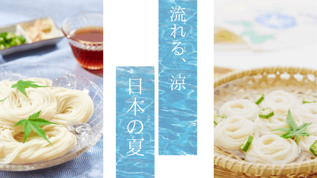 CANVA無料素材で、涼し気そうめんのバナー