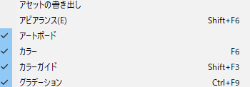 - メニューから「ウィンドウ > アセットの書き出し」を開きます。